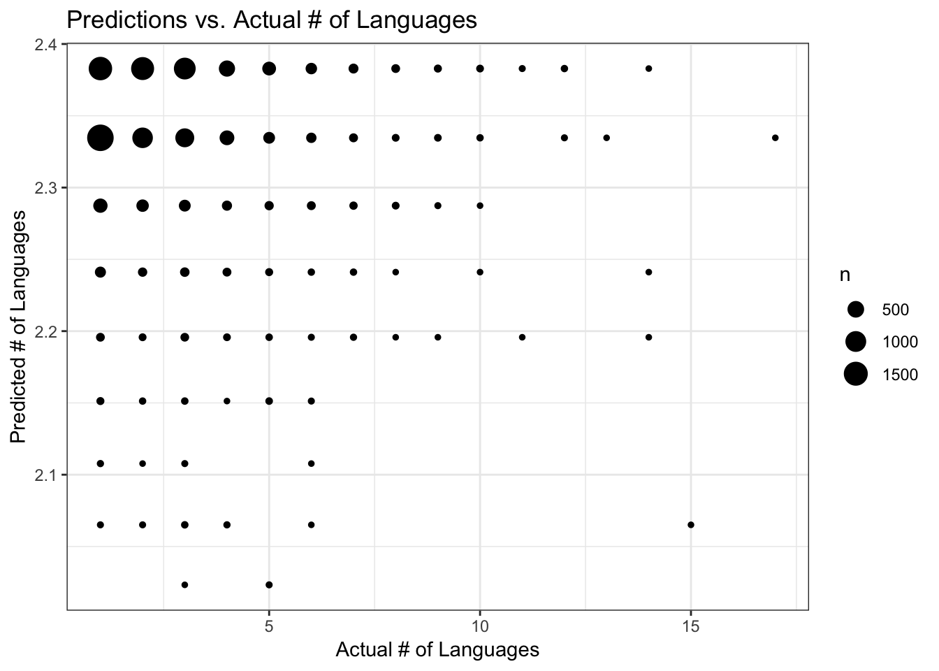 Q2: What are the best predictors of computer language (only for top five non-R languages)?