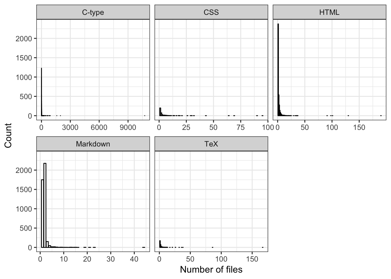 length(levels(cran_code$language)) # 108 languages## [1] 108